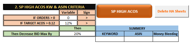 - Step 7: SP High ACOS KW & ASINs Criteria