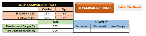 - If ACOS <= 25%, increase the campaign budget by 25%.