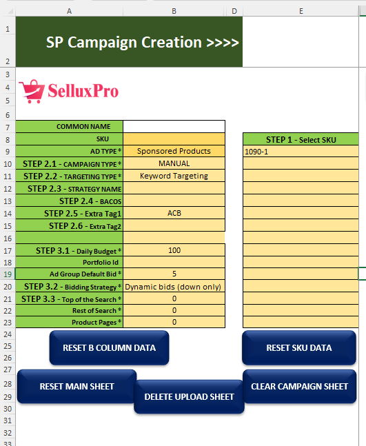 - Upload to Amazon: Press the Step 6 button to upload the sheet and start your campaigns.